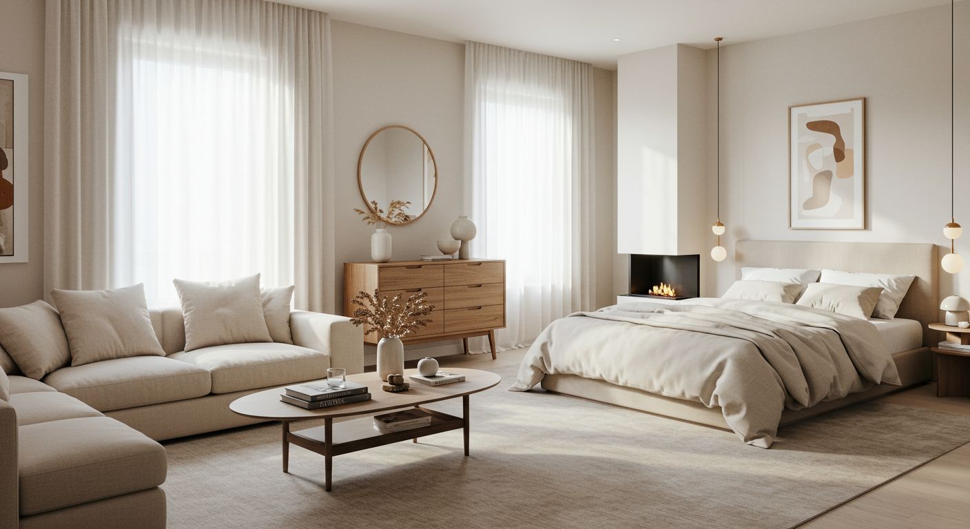 The kitchen reflects the couple’s signature style, featuring white subway tiles, a marble island, and dark wooden cabinetry. It leads directly to a backyard with ivy-clad brick walls.