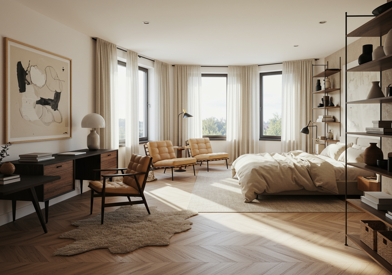 The primary suite is situated at the rear of the parlor level and comes with an ensuite bathroom, a walk-in closet, and a private terrace. Prior to Luhrmann and Martin’s ownership, Clifford Jordan, a renowned jazz tenor saxophonist, lived on the fourth floor for decades. That area is still a standalone suite set up with a living room, bar, gym, bedroom, and bathroom.