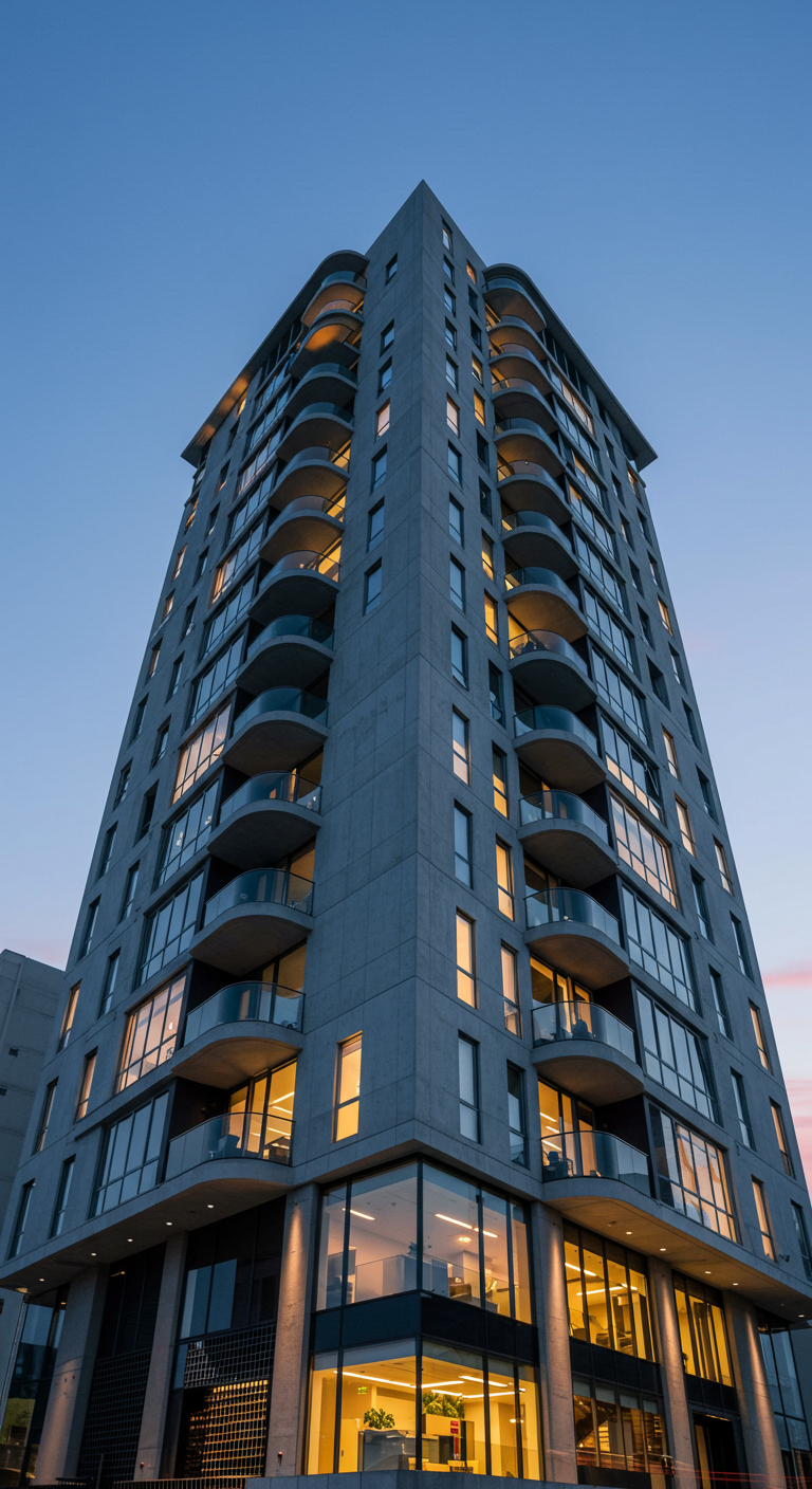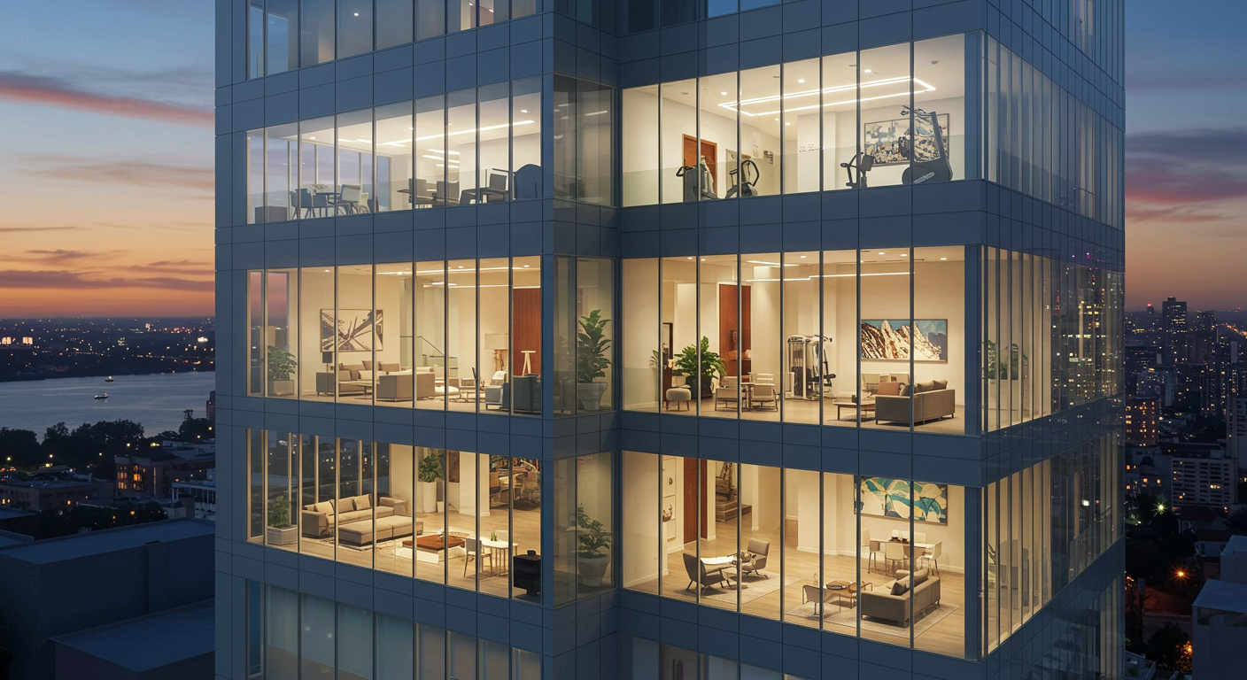 Rounded corners are a defining feature both inside and out. Along with the exposed concrete column that runs the length of the building, these features allow The Greenwich to distinguish it from surrounding downtown skyscrapers.