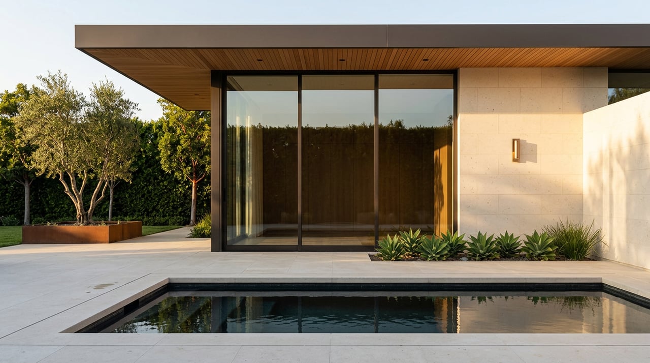 The clean-lined house in Bel Air, California is known as The Brown House and was built in 1955 by the late architect, who was known for pioneering the idea of indoor-outdoor California living and whose houses have since been owned and prized by such entertainment names as Flea, Mitch Glazer and Kelly Lynch, stylist Jeanne Yang, and directors Josef von Sternberg and Marc Forster.