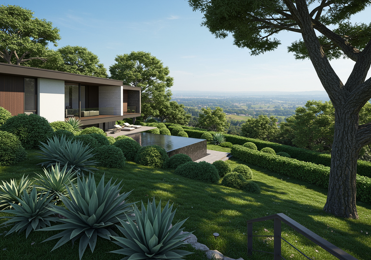 The listing for the six-bedroom house, which calls it an architectural “work of art,” notes that it offers 180-degree views of L.A., restored original cabinetry, terrazzo floors and walls of glass that look out on the Roman-inspired gardens.